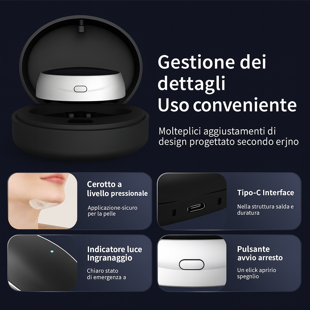 La tecnologia a impulsi rileva il russamento e interviene delicatamente per favorire una respirazione più fluida.